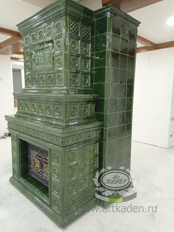 Цена: 585 000 руб. Параметры Габариты (ДхШхГ) см: 2635х1665х1065 Материал: Шамот Количество изразцов: 549 шт. Цвет: Изумруд . Может быть исполнен в любом цвете. Содержание: Изразцовая облицовка на камин "Залесье"